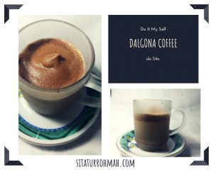 Wah ikut bikin kopi yang yang nge-hits juga nih. Kalau saya liat linimasa sosmed, kopi dalgona ada kayak semacam krimnya gitu. Tapi beda beda versi dan bahan pastinya. Aliasnya sesuka kita.